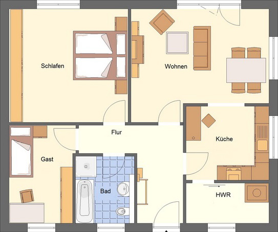 - Zusatzausstattungen wie Kaminzug oder elektrische Rollladen planbar (Mehrkosten).