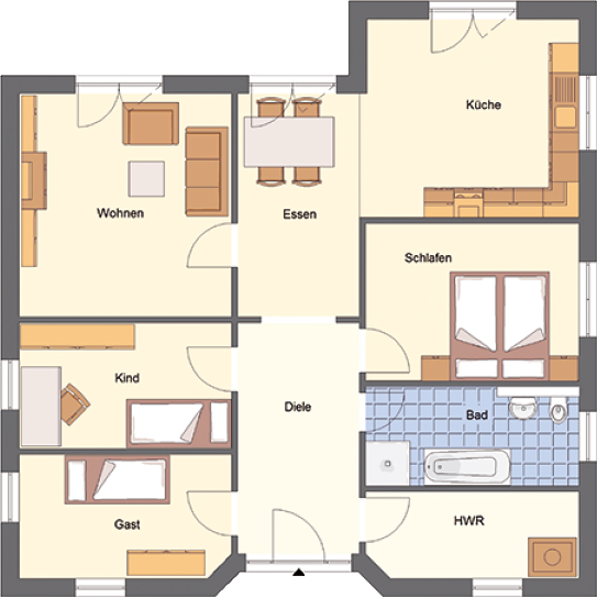 - Zusatzausstattungen wie Kaminzug oder elektrische Rollladen planbar (Mehrkosten).